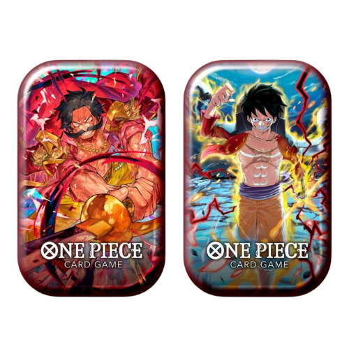 A 2 pack tin featuring either art of Gol.D.Roger or Monkey.D.Luffy